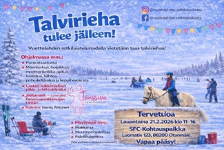 La 21.2.2026 klo 11-16 Vuottolahden retkiluisteluradan talvirieha, Luomatie 123 Otanmäki.